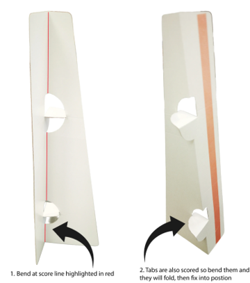 Lock the tabs: Fold out the round pre-scored tabs and slot them into position to hold the stand shape.