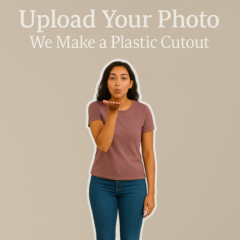 Photo Tips: To ensure your cutout looks amazing, use a high-resolution photo where the subject is in clear focus and not cropped out. Good lighting and a simple background help (but we’ll remove the background anyway). If you’re unsure about your image quality, feel free to send it to us first – we’re happy to advise before printing. We may reach out if the photo needs adjustments, because we want your cutout to turn out perfect.